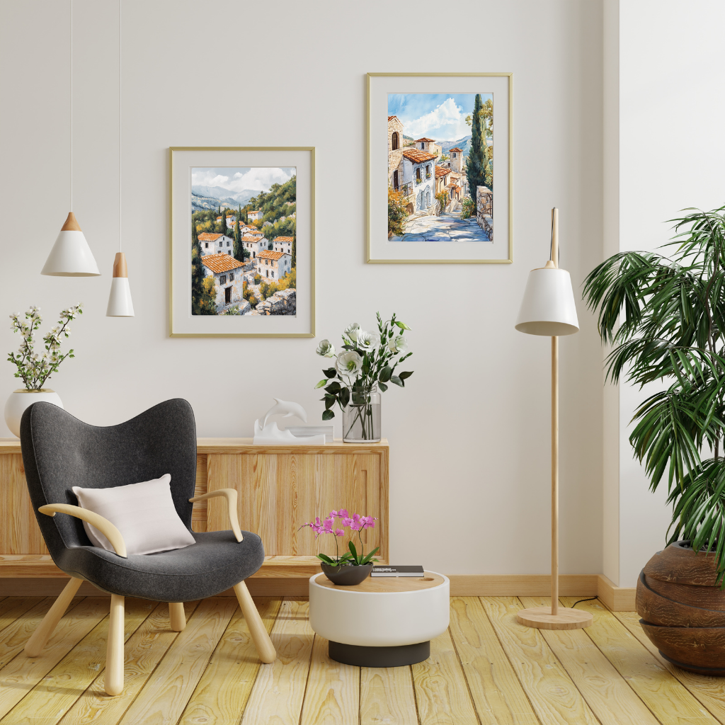 This two-piece collection captures the dual essence of Cyprus, the delicate human craftsmanship of its villages and the untamed beauty of its mountain landscapes. Lefkara reflects the intricate patterns and soft palette of traditional lace-making, rendered in a modern abstract style that honors the island’s artisan heritage. Troodos evokes the dramatic serenity of the mountainous region, with layered textures and cool earthy tones that mirror its misty pines and ancient terrain. Together, these artworks form a meaningful pairing of culture and nature, perfect for refined, travel-inspired spaces.